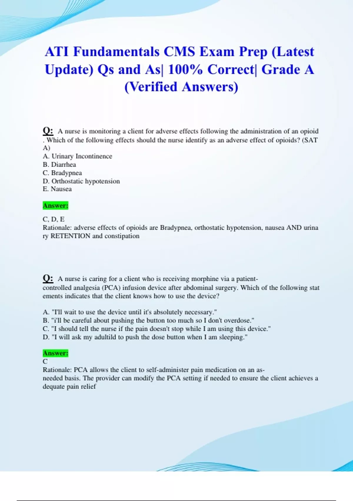 ATI Fundamentals CMS Exam Prep (Latest 2024/ 2025 Update) Qs and As| 100% Correct| Grade A (Verified Answers)