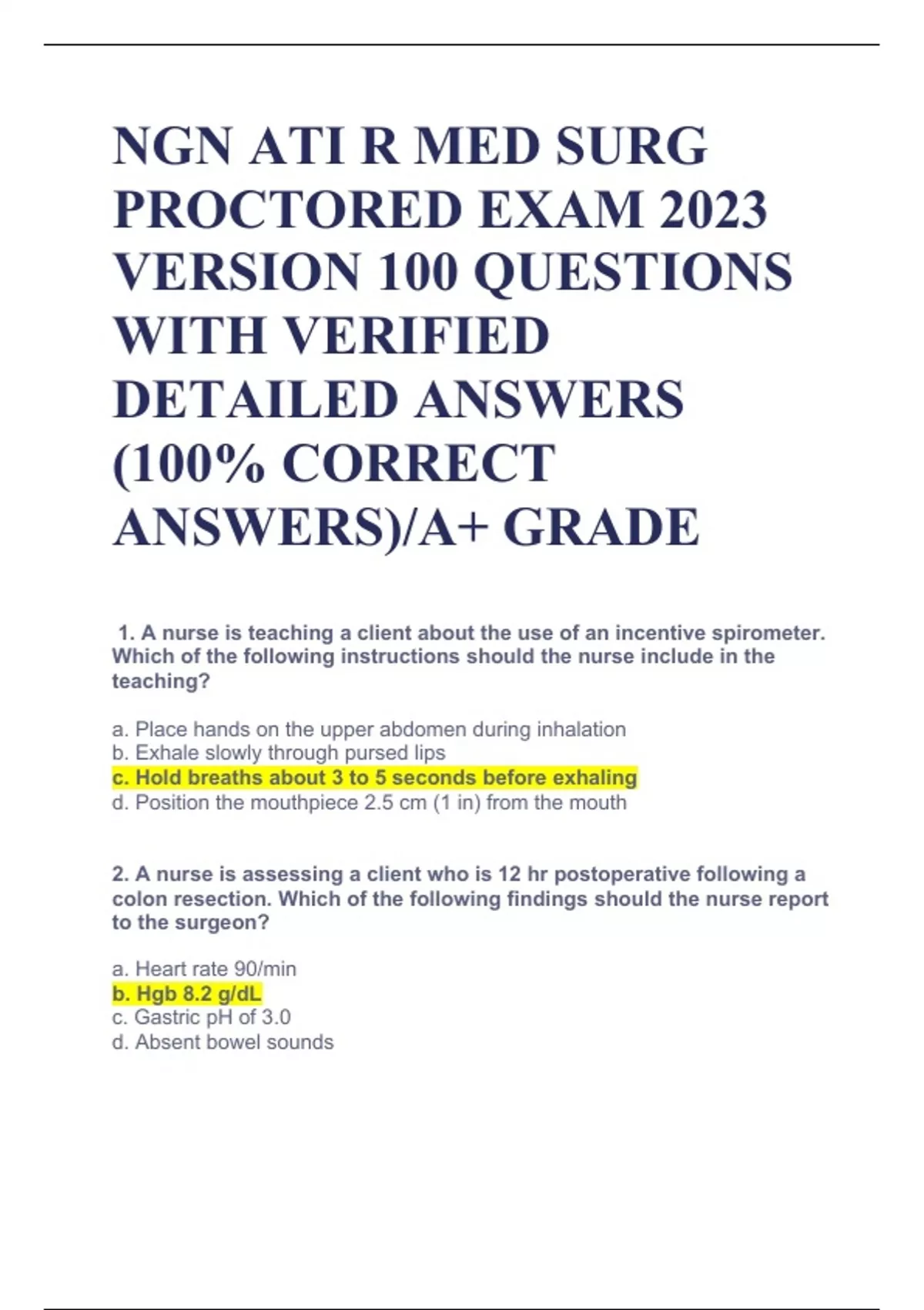 (2023/2024) ATI MED SURG Exam |ATI MED SURG Proctored & Actual Exams| Latest & Graded A { IN BUNDLE}