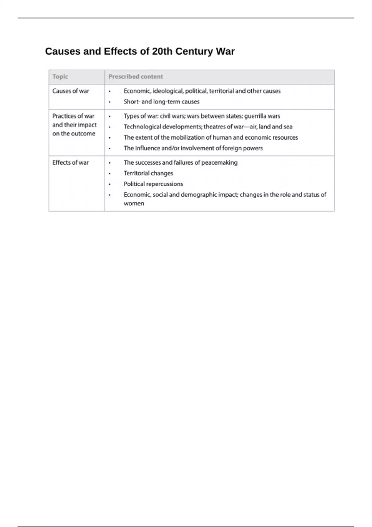 IB History Paper 2 Essay Plan: Causes and Effects of 20th Century War + Cold War