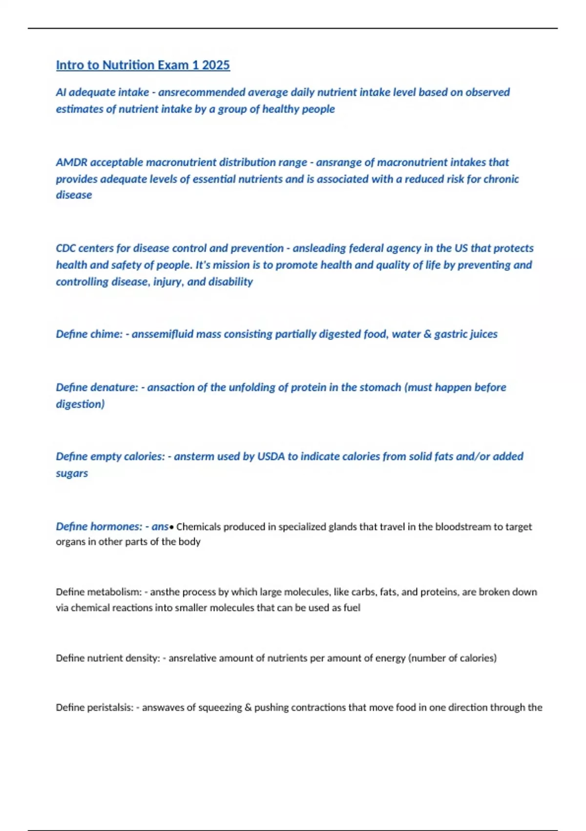 Intro to Nutrition Exam 1 2025