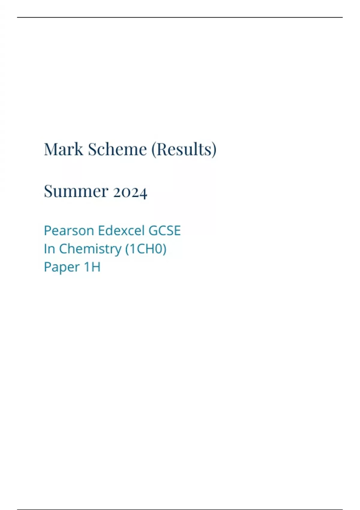 ACTUAL EDEXCEL GCSE 2024 CHEMISTRY HIGHER TIER PAPER 1 MARKSCHEME