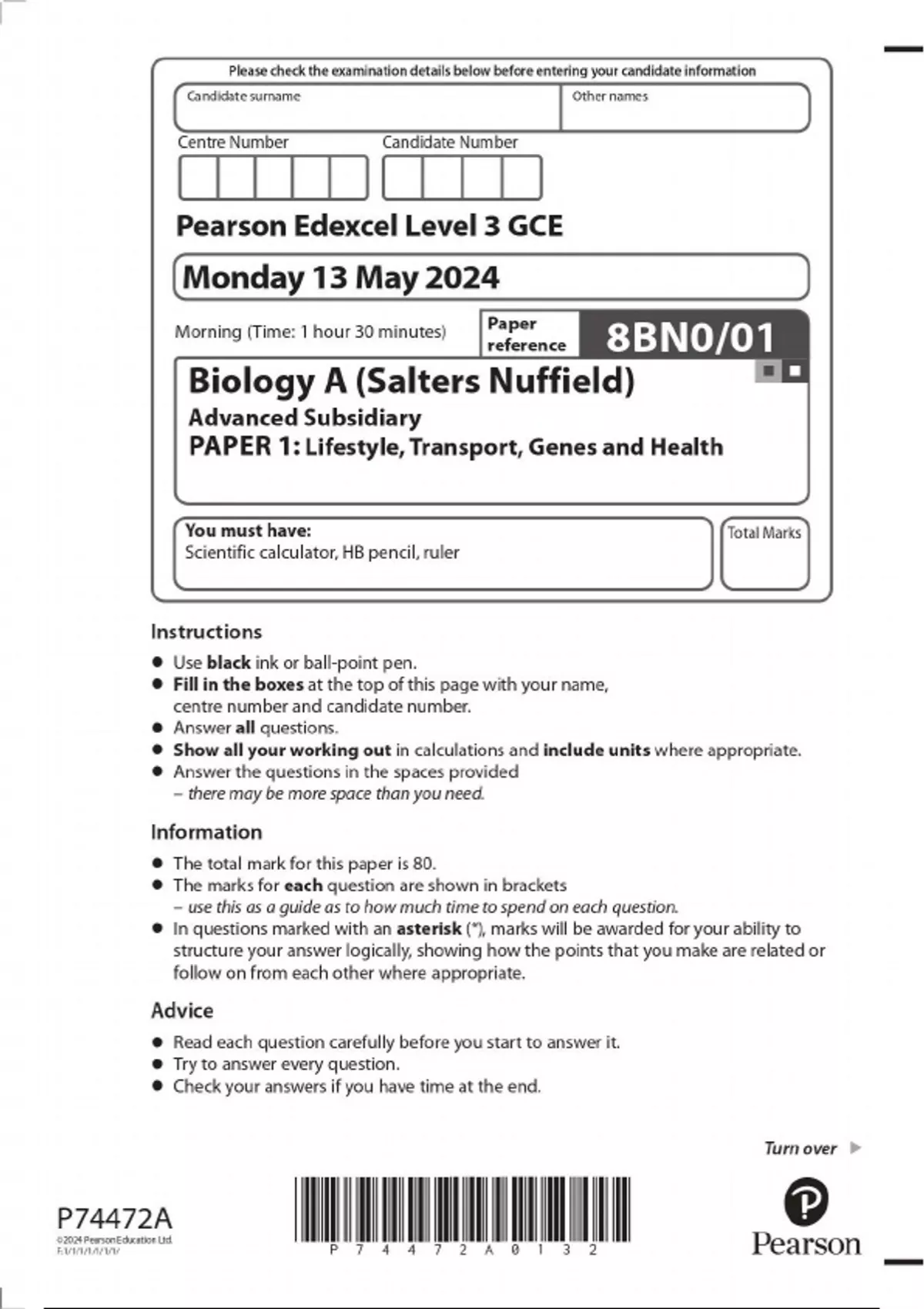 AS-Level & A-Level EDEXCEL 2025 Biology A (Salters Nuffield) All Question Papers Including All Mark Schemes