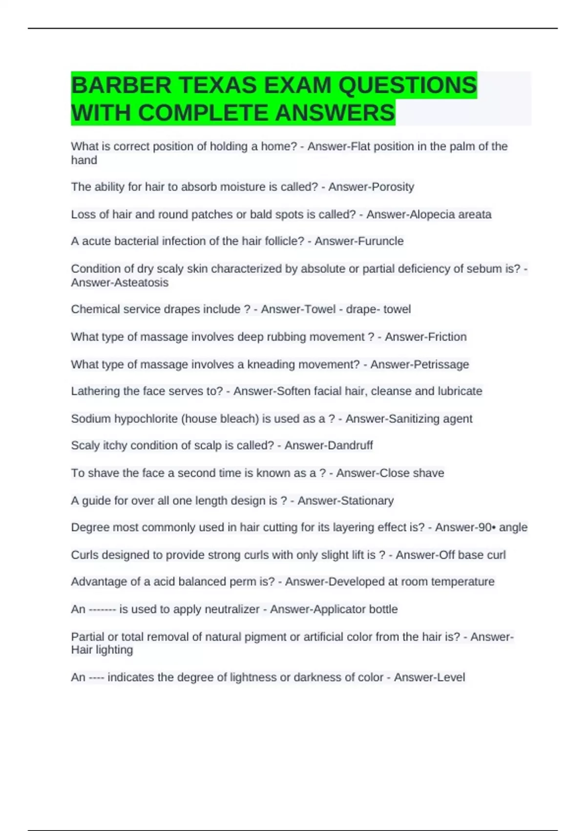 - Barber texas exam questions with complete answers