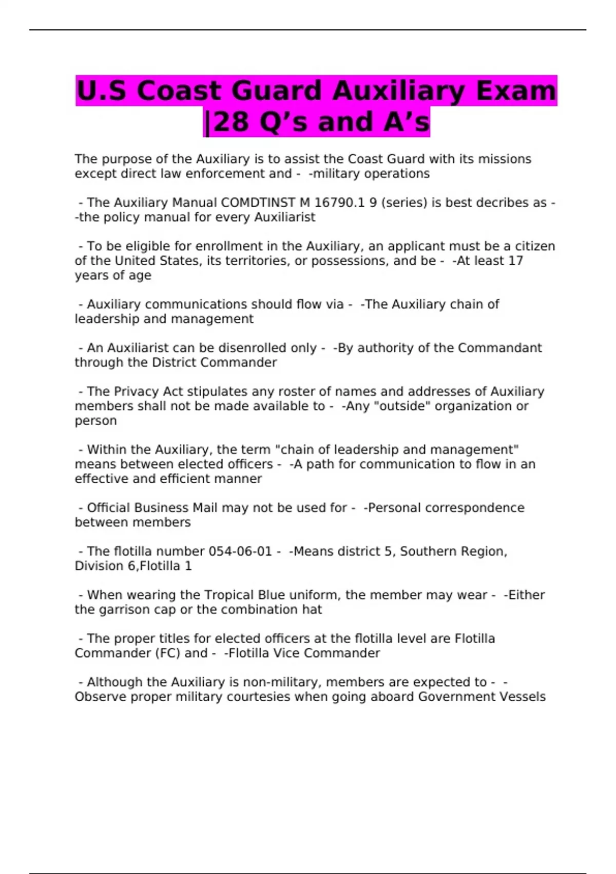 USCG Auxiliary Exams - Questions with Answers - Bundle
