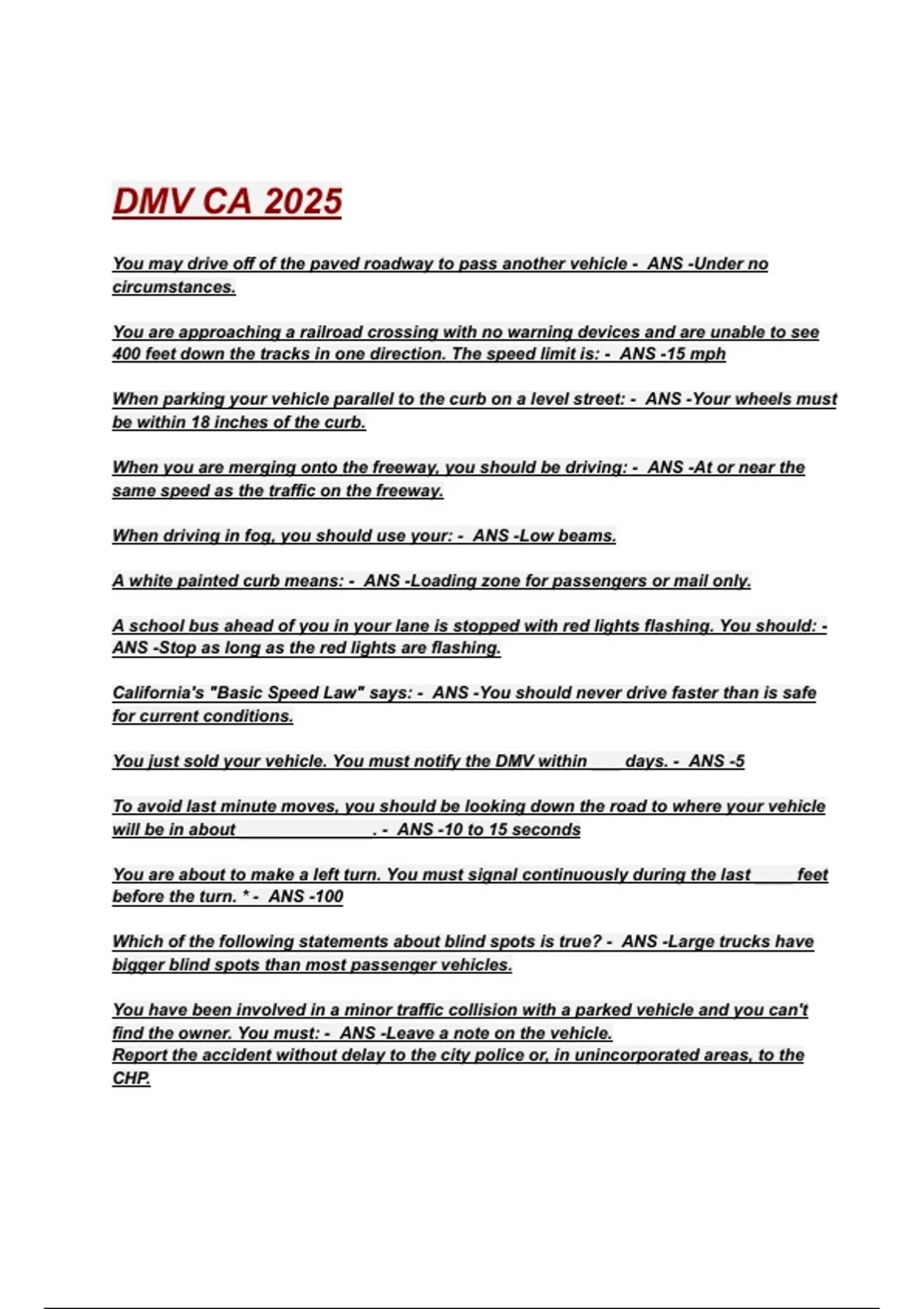DMV CA 2025 EXAM QUESTIONS WITH CORRECT ANSWERS 2025/2026( A+ GRADED 100% VERIFIED).