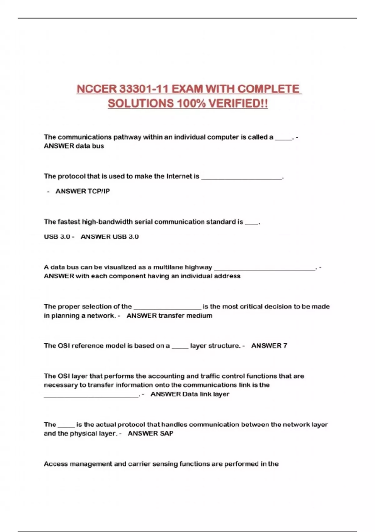 NCCER 33301-11 EXAM BUSES AND NETWORKS QUESTIONS AND CORRECT ANSWERS NEW UPDATE!!