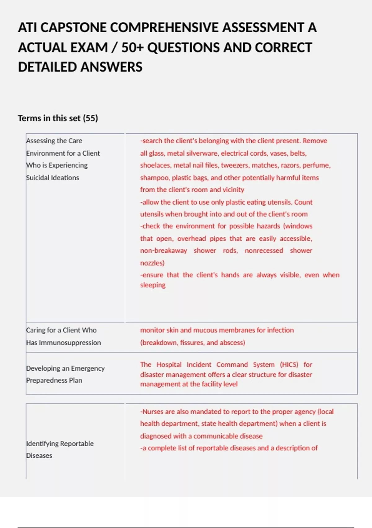 ATI CAPSTONE COMPREHENSIVE ASSESSMENT A ACTUAL EXAM / 50+ QUESTIONS AND CORRECT DETAILED ANSWERS 2 Exam (elaborations) ATI CAPSTONE COMPREHENSIVE ASSESSMENT B & A COMPLETE ACTUAL EXAM / 150+ QUESTIONS AND CORRECT DETAILED ANSWERS
