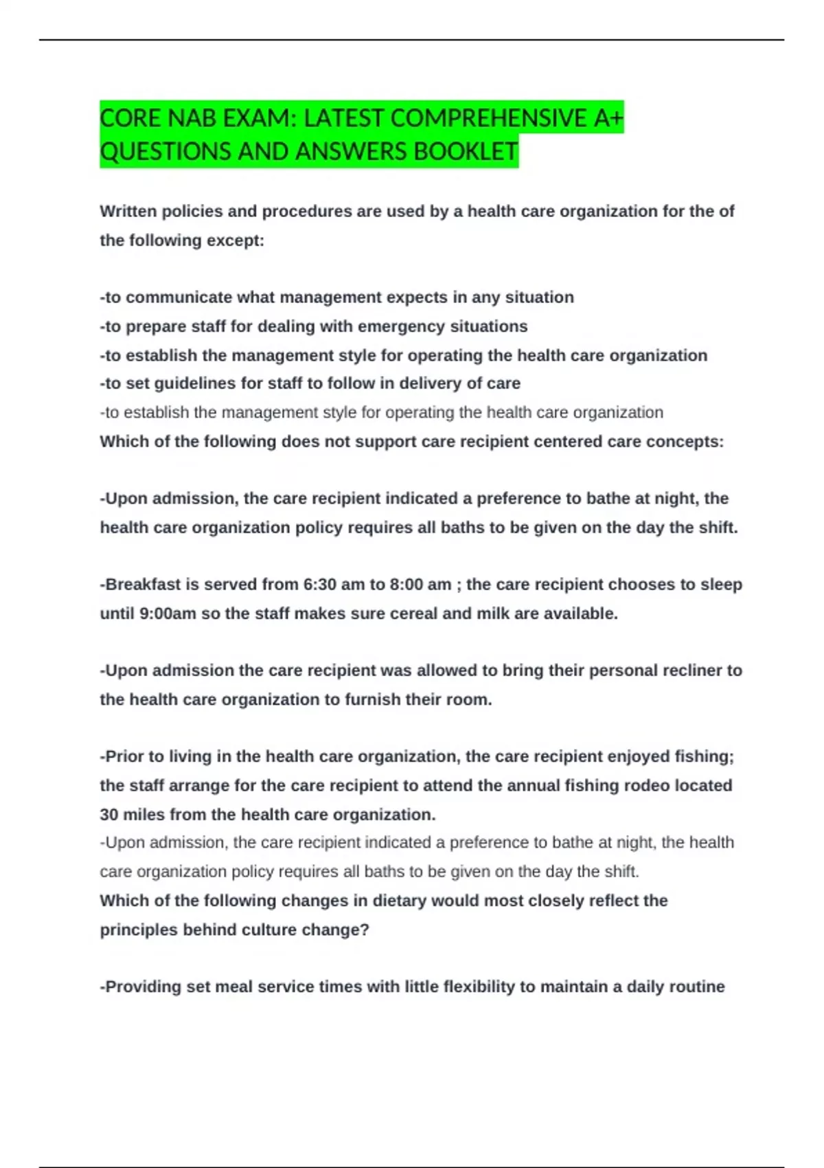 BUNDLED NAB EXAM: LATEST COMPREHENSIVE A+ QUESTIONS AND ANSWERS BOOKLET