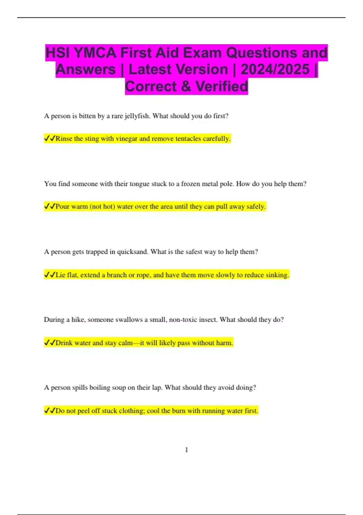 YMCA Lifeguarding/First Aid Bundled Exams Questions and Answers Latest Versions (2025/2026) (Complete and Accurate)