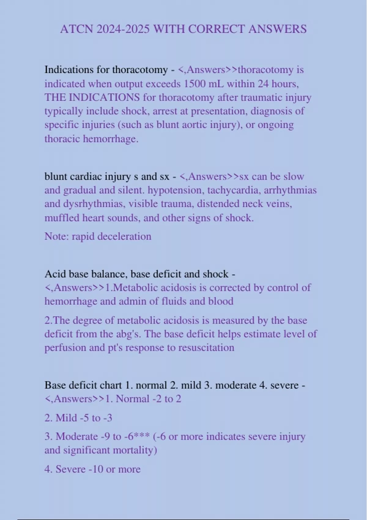 ATCN REVIEW,ATCN 2020 CHAPTER 3 SHOCK,ATCN PRETEST EXAM,ATCN WITH CORRECT ANSWERS