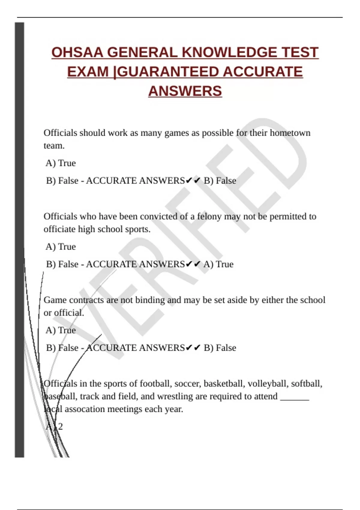 OHSAA BASEBALL EXAM 2025 |GUARANTEED ACCURATE ANSWER OHSAA BASEBALL ONLINE TEST EXAM 2025 |GUARANTEED ACCURATE ANSWERS OHSAA BASKETBALL EXAM 2025 |GUARANTEED ACCURATE ANSWERS |UPGRADED OHSAA GENERAL KNOWLEDGE TEST EXAM |GUARANTEED ACCURATE ANSWERS LHSAA BASEBALL RULES STUDY QUESTIONS 2025 |GUARANTEED ACCURATE ANSWERS