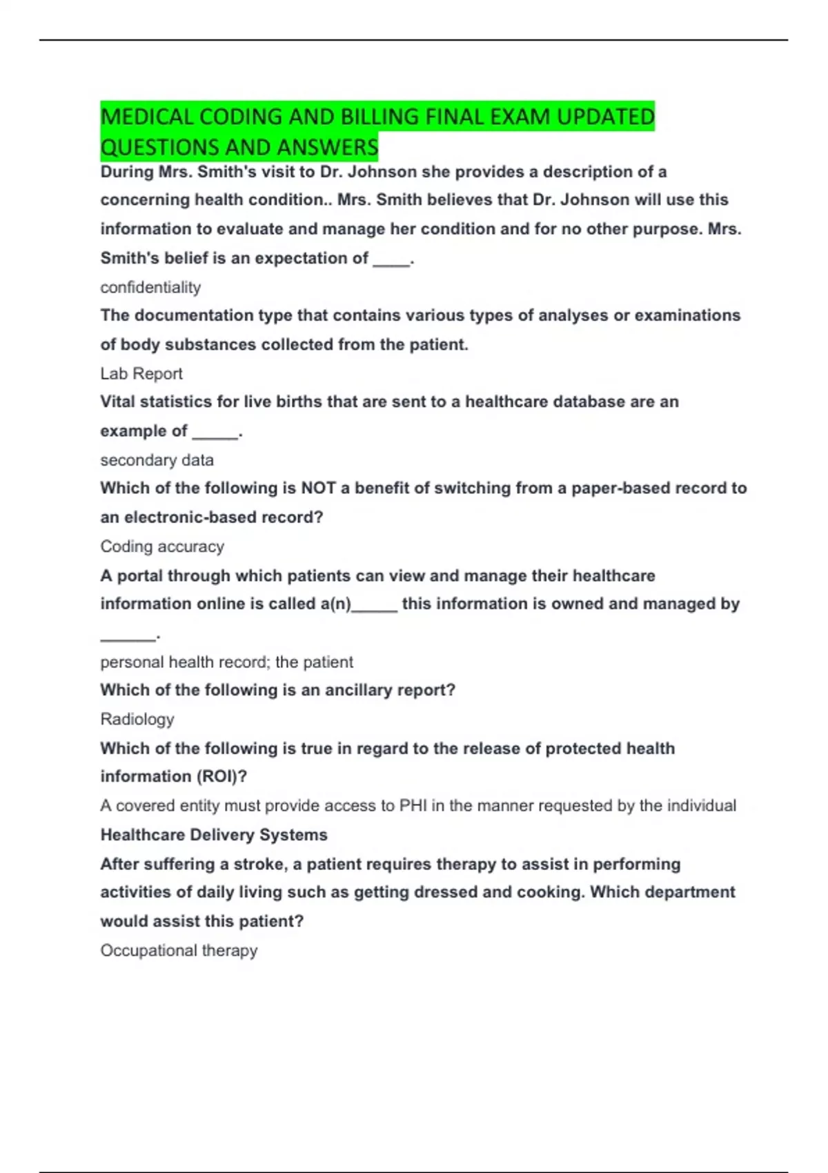 MEDICAL CODING AND BILLING FINAL EXAM UPDATED QUESTIONS AND ANSWERS