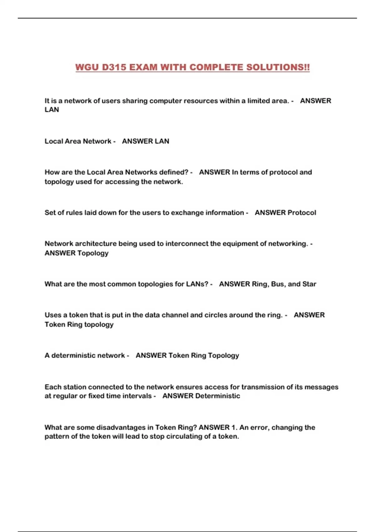 WGU D315 EXAM WITH COMPLETE SOLUTIONS 100% VERIFIED!!