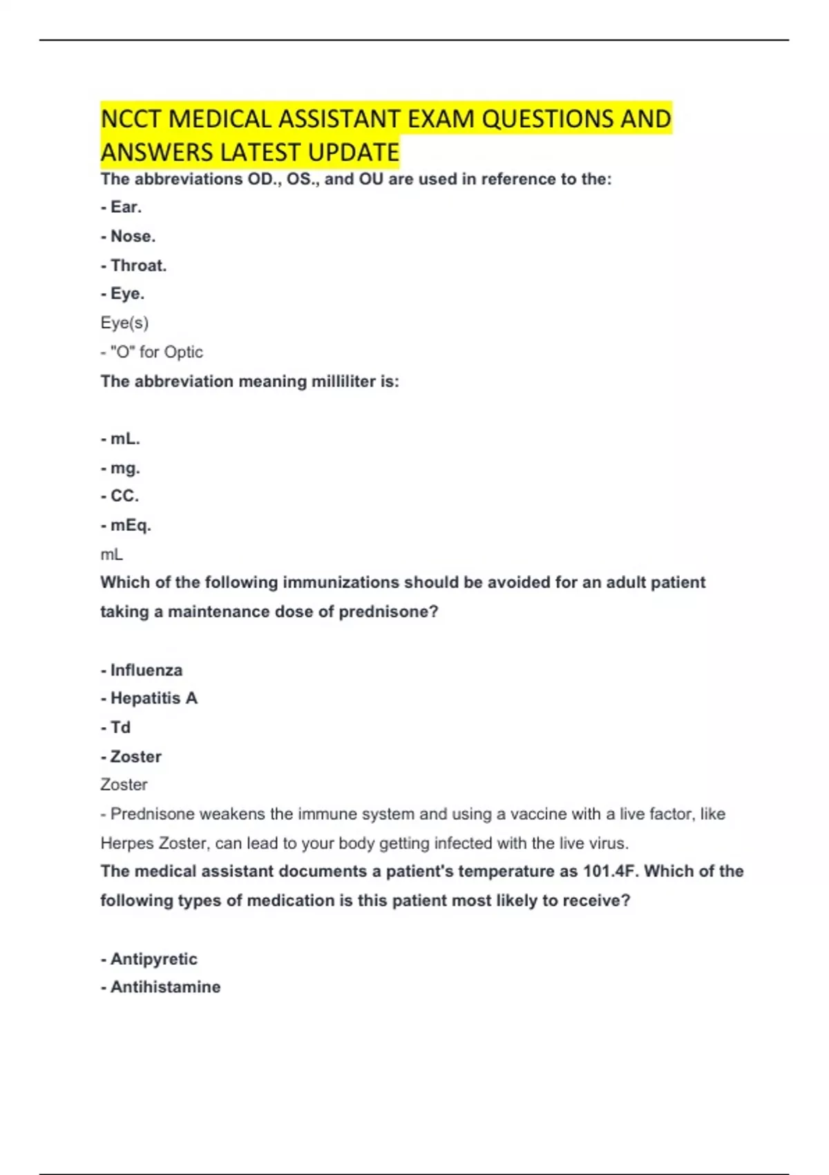 NCCT MEDICAL ASSISTANT EXAM QUESTIONS AND ANSWERS LATEST UPDATE