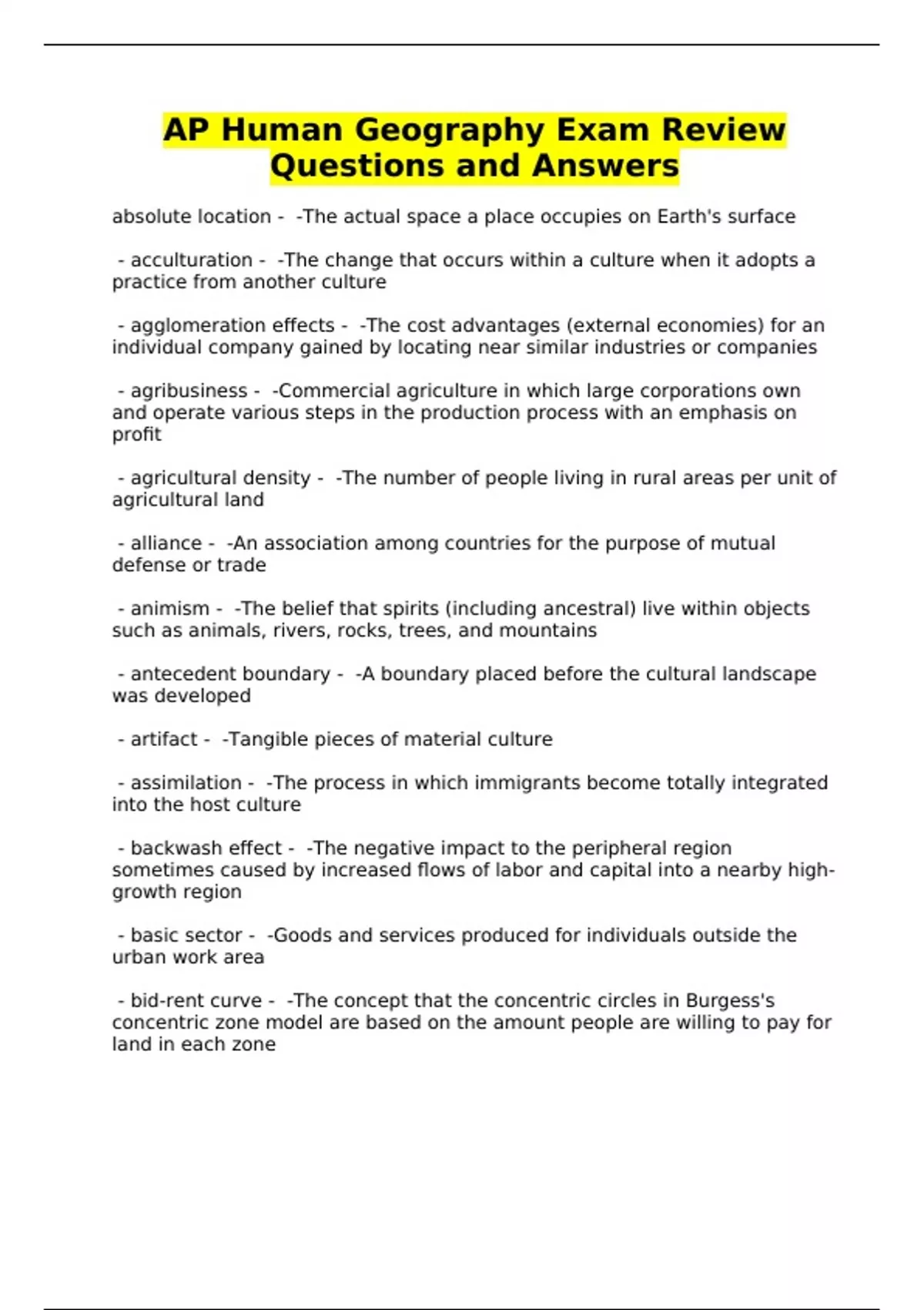 AP Human Geography (APHUG) Exams - Questions and Answers - Bundle