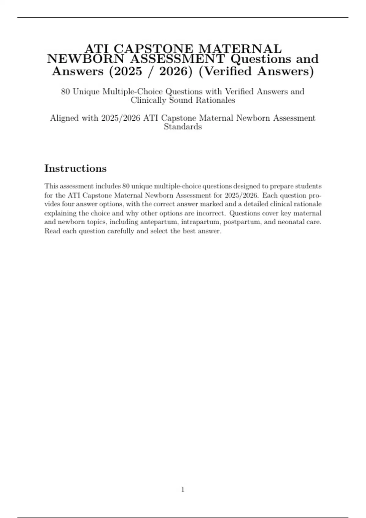 ATI Capstone Maternal Newborn Assessment Version A & B (2025/2026) – Verified Actual Exam Questions with 100% Correct Answers | Complete Dual-Version A+ Study Bundle
