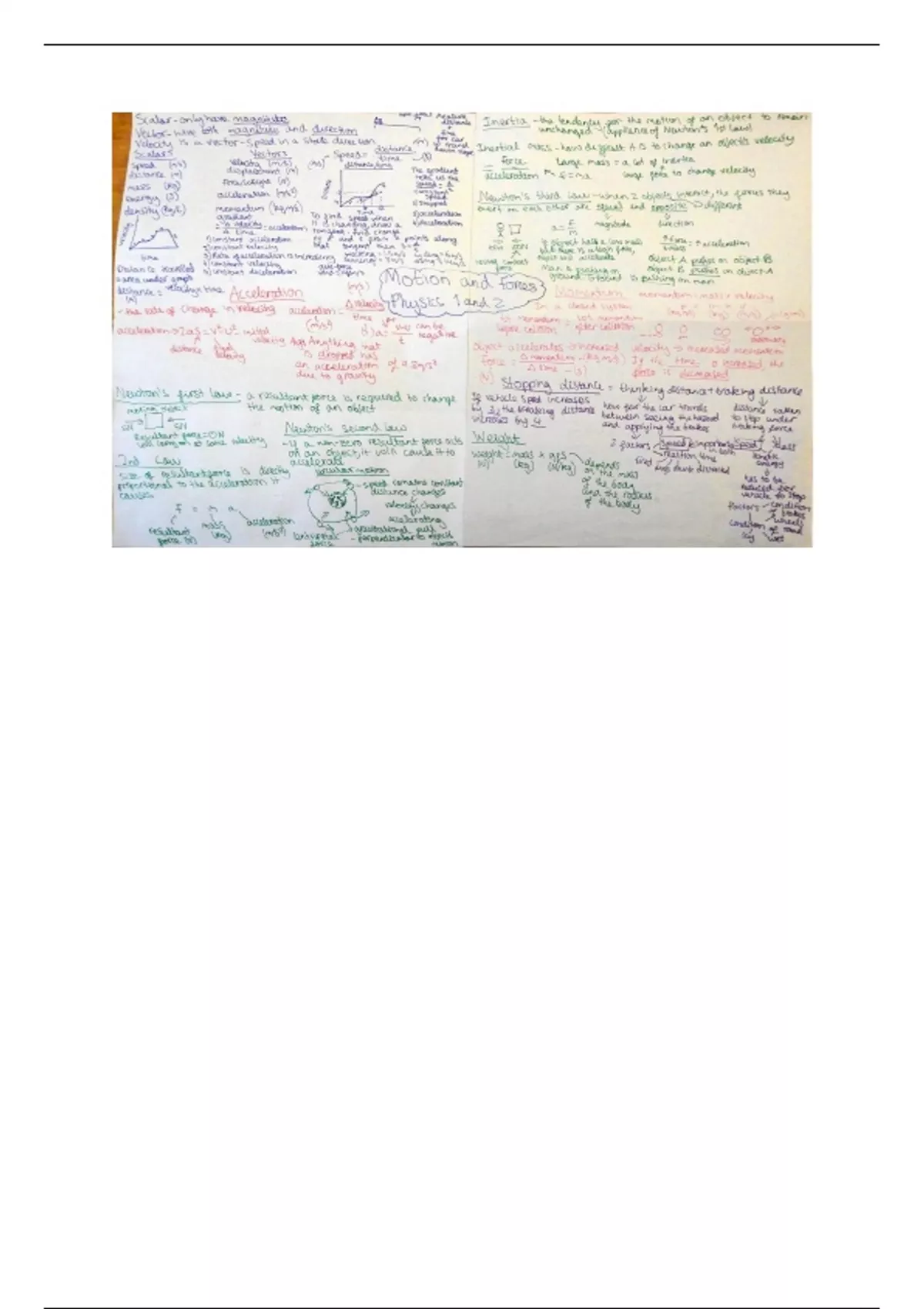 Summary - GCSE Physics - P1 + P2 - Motion and Forces