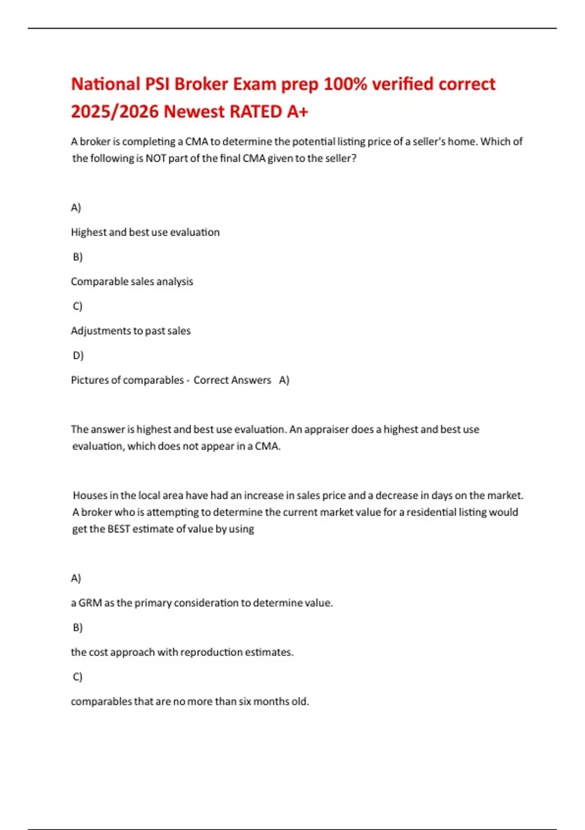 National PSI EXAM PRACTICE TEST With 50 Questions and answers Newest RATED A+ 2025/2026 2 Exam (elaborations) National PSI Exam prep question and answers New!! question like this will be on the test, learn the meaning behind everything. 2025/2026 3 Exam (elaborations) National PSI Broker Exam prep 100% verified correct 2025/2026 Newest RATED A+