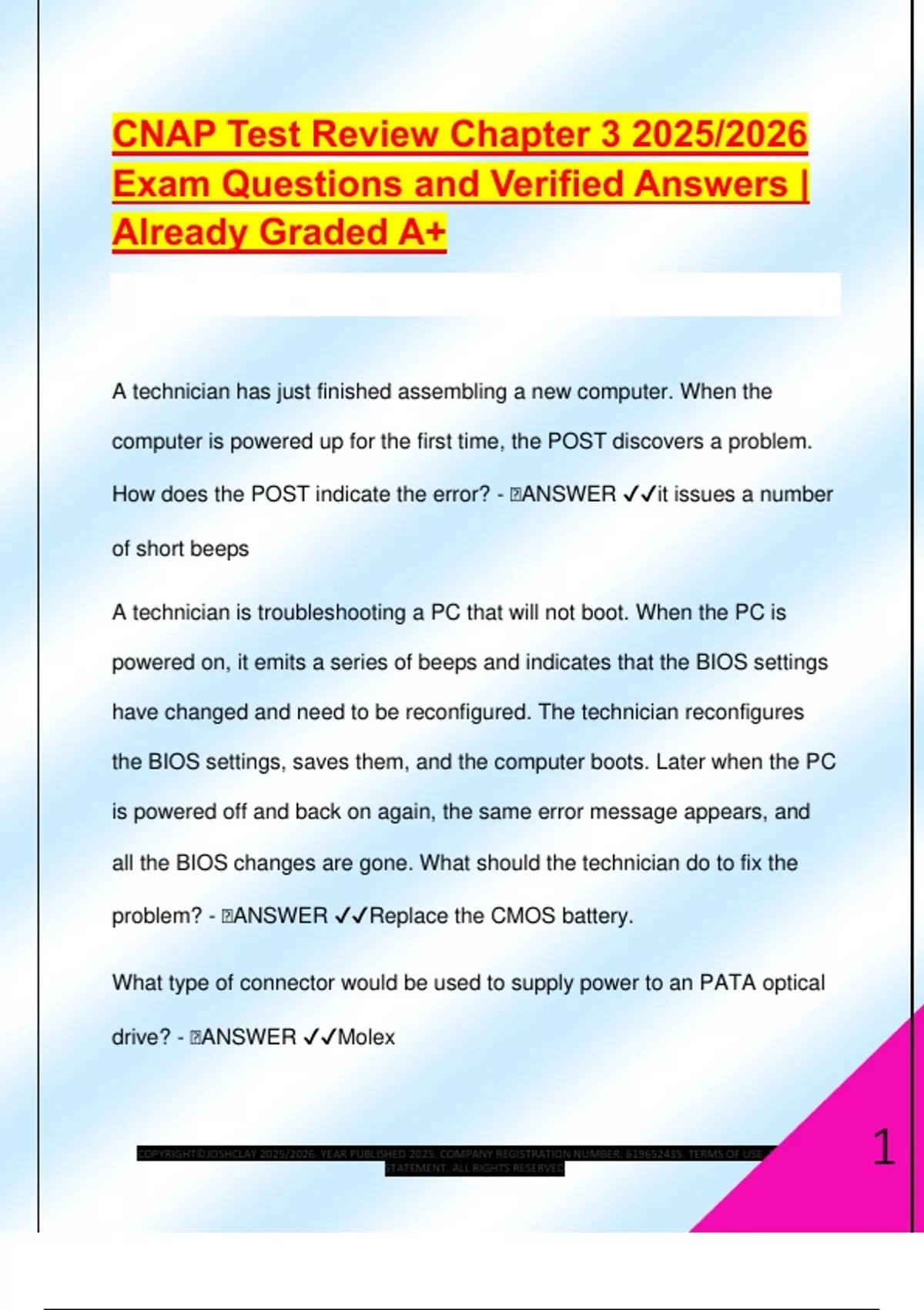 CNAP Test Review Chapter 3 2025/2026 Exam Questions and Verified Answers | Already Graded A+