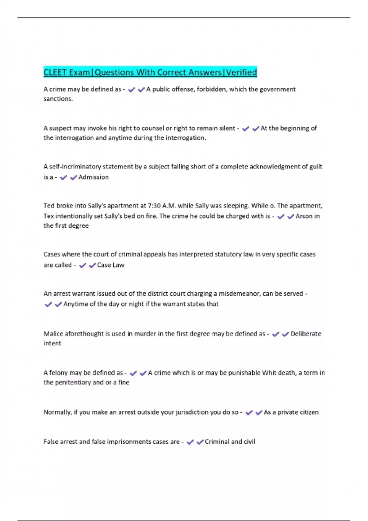 CLEET EXAMS BUNDLE |Questions With Correct Answers | Verified