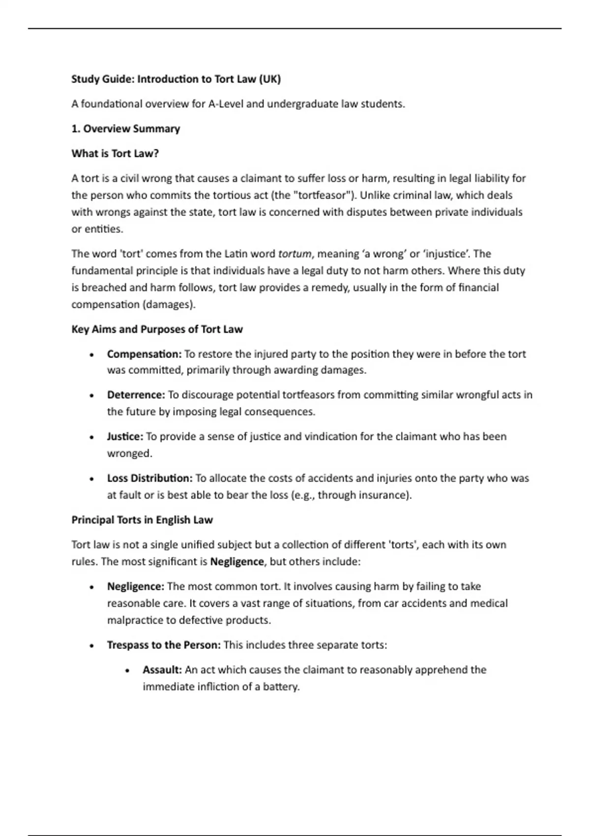 This comprehensive Tort Law bundle includes professionally structured summaries for every major topic in UK Tort Law, designed for LLB and A-Level Law students. Each topic is exam-ready, clearly organized, and packed with useful revision tools like IRAC case summaries, Q&A flashcards, legal definitions, and essay plans.