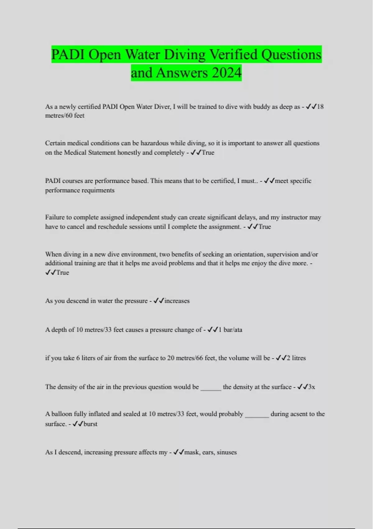 SDI Open Water Bundled Exam Questions WITH CORRECT Answers