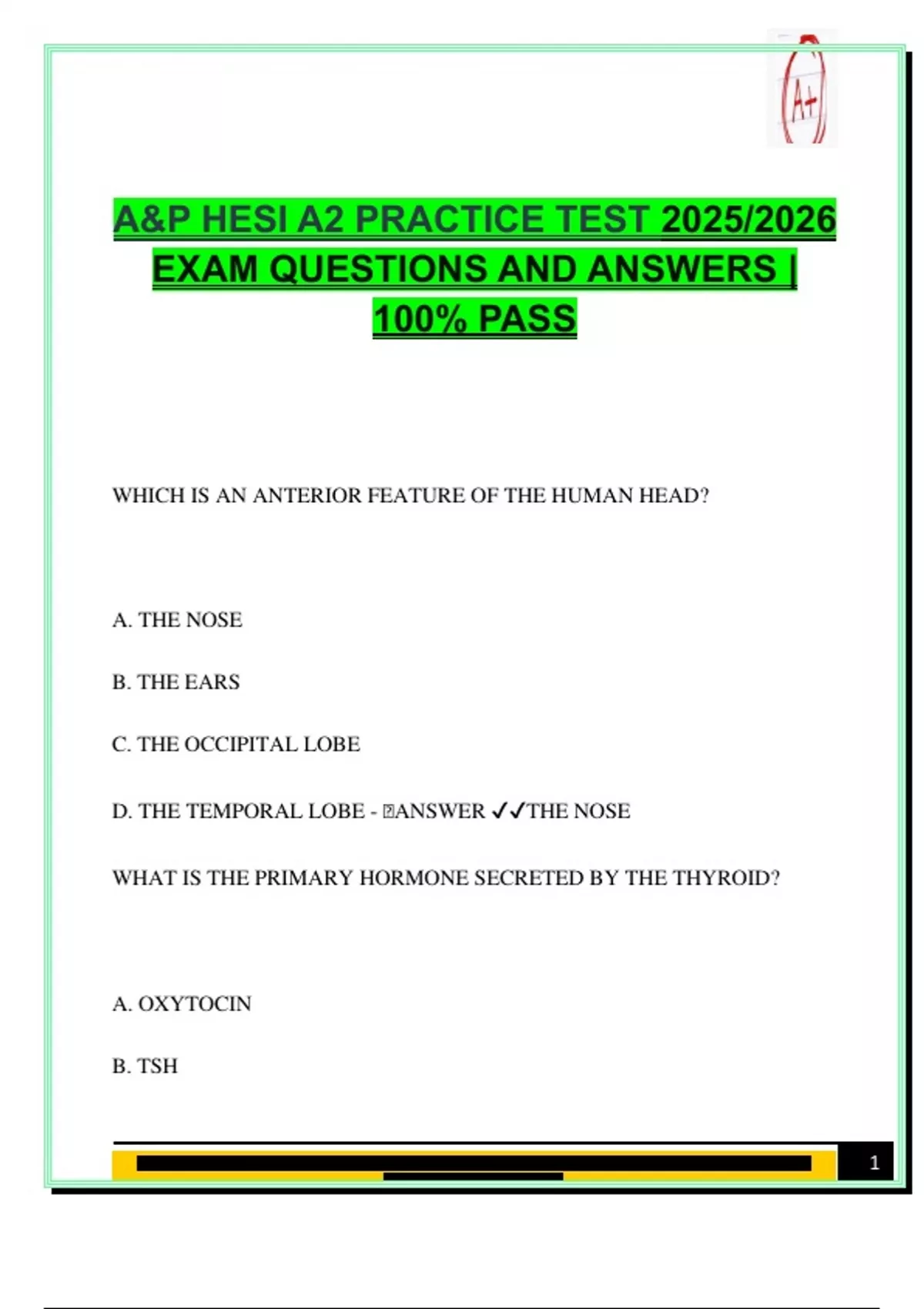 50 Practice Questions with Answers – A&P HESI A2 Exam Prep 2025/2026 (Anatomy and Physiology)
