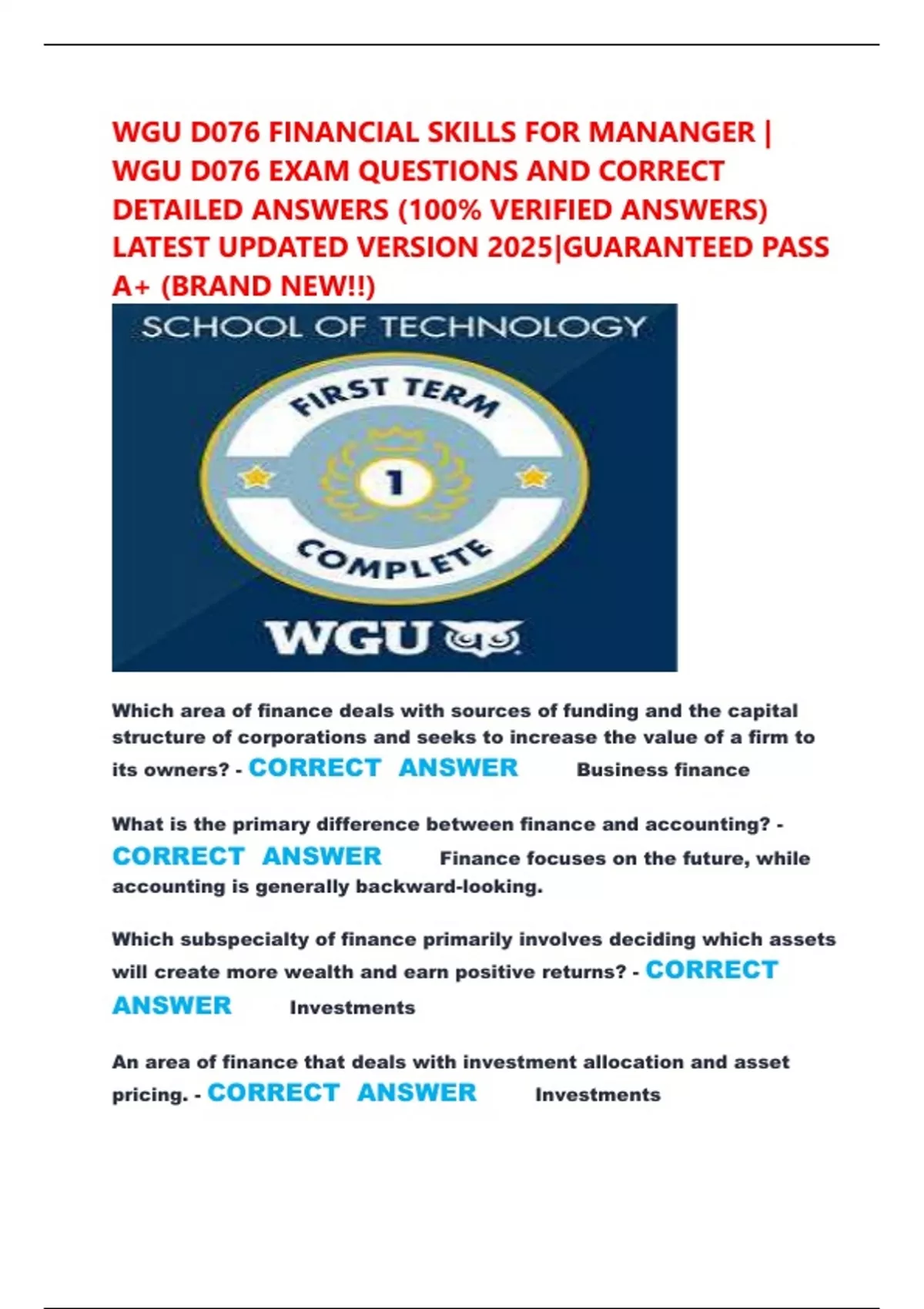 Exam (elaborations) WGU D076 Objective Assessment Final Exam 2 [ACTUAL EXAM] LATEST VERSION [QUESTIONS AND ANSWERS] WITH PRACTICE EXAM DETAILED AND VERIFIED FOR GUARANTEED PASS- LATEST UPDATE 2025 GRADED A 2 Exam (elaborations) WGU D076 Objective Assessment Final Exam 2 [ACTUAL EXAM] LATEST VERSION [QUESTIONS AND ANSWERS] WITH PRACTICE EXAM DETAIL