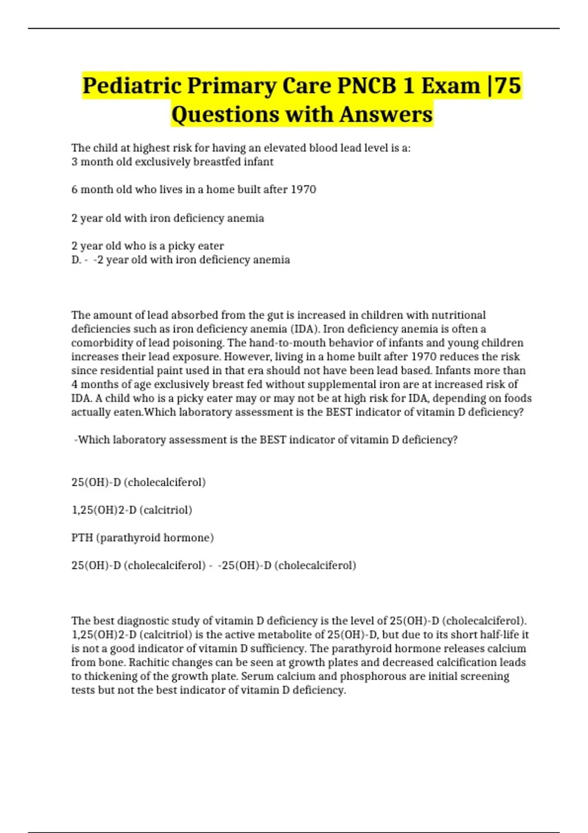 Pediatric Primary Care PNCB 1 Exam |75 Questions with Answers