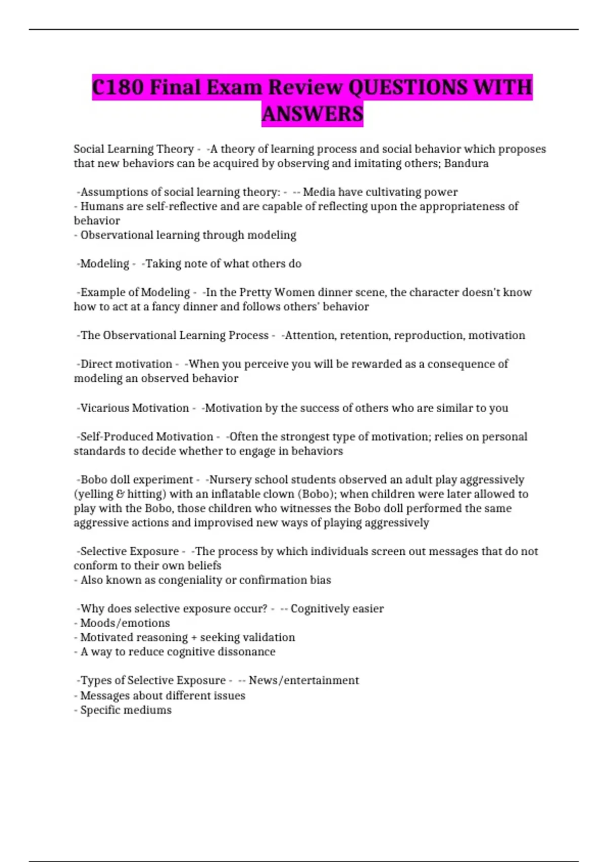 C180-Introduction to Psychology Exam |200 Q’s and A’s