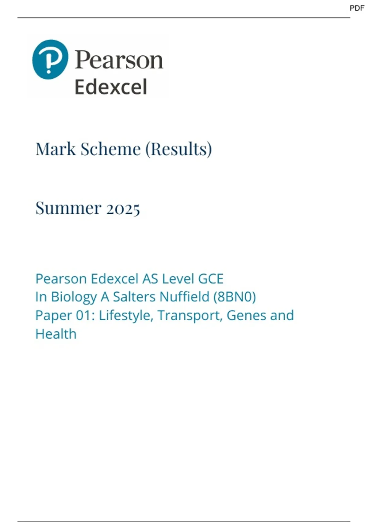 This package deal contains complete copies of the actual past paper 1 and mark scheme done in summer 2025 for Pearson Edexcel AS-Level Biology A. For efficient revision and potential borrowed questions for future exams - consider trying out the questions yourself - then use the mark scheme to self-assess!
