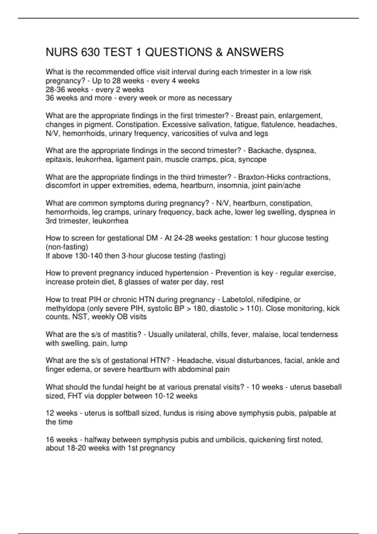 NUR 630 FINAL EXAM - ANNALISE-S VERSION 2 Exam (elaborations) NUR 630 QUIZ 1 QUESTIONS AND ANSWERS 3 Exam (elaborations) NUR 630 QUIZ 2 QUESTIONS & ANSWERS 4 Exam (elaborations) NURS 630 EXAM 1 QUESTIONS & ANSWERS 5 Exam (elaborations) NURS 630 TEST 1 QUESTIONS & ANSWERS 6 Exam (elaborations) NURS 630 WEEK 4 ASSESSMENT QUESTIONS