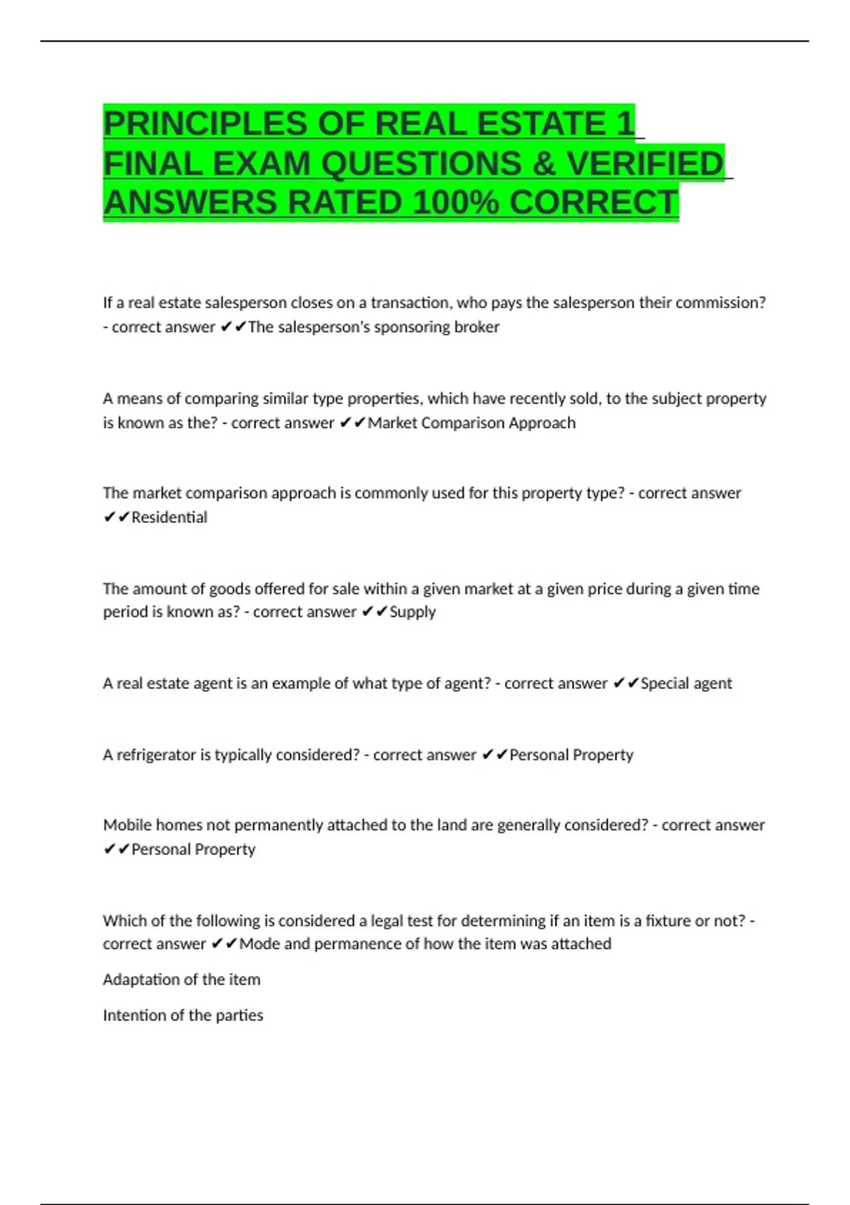 package deal for TEXAS PRINCIPLES OF REAL ESTATE EXAM (LATEST UPDATE)