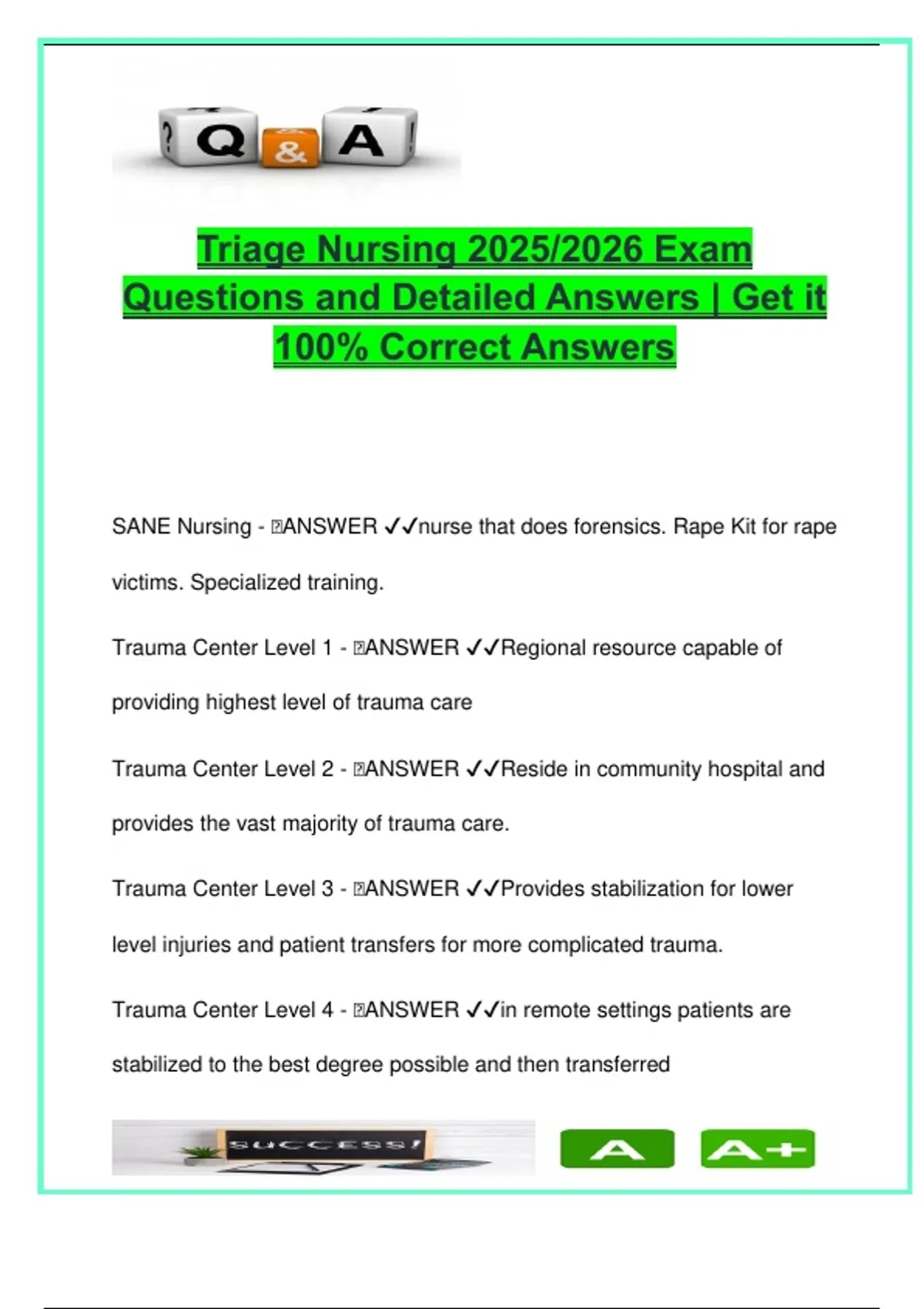 TRIAGE NURSING EXAM COMPLETE PACKAGE DEAL