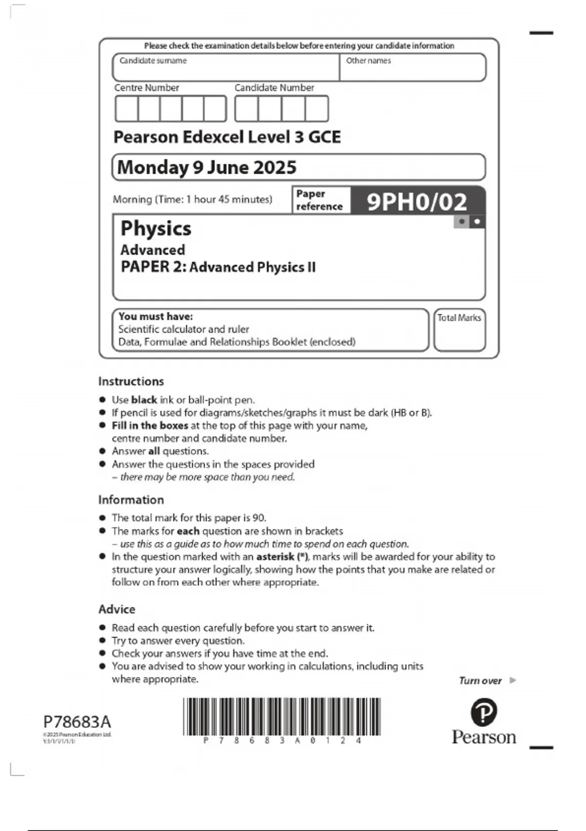 Edexcel GCE Level 3 Advanced Physics Paper 2 | 2025 Paper, and mark scheme & Revision Guide 2025