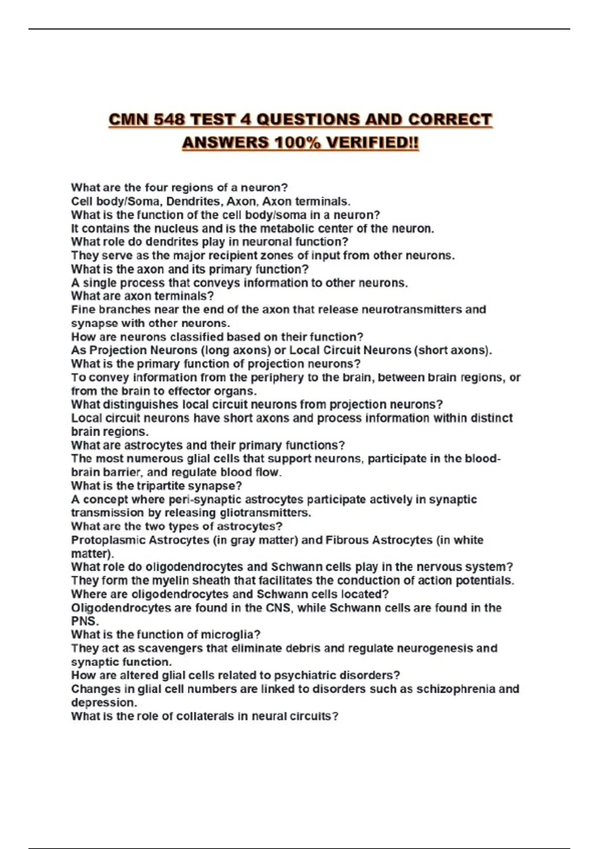 CMN 548 EXAM 4 NEUROTRANSMITTERS STUDY SET WITH 100% VERIFIED SOLUTIONS!!