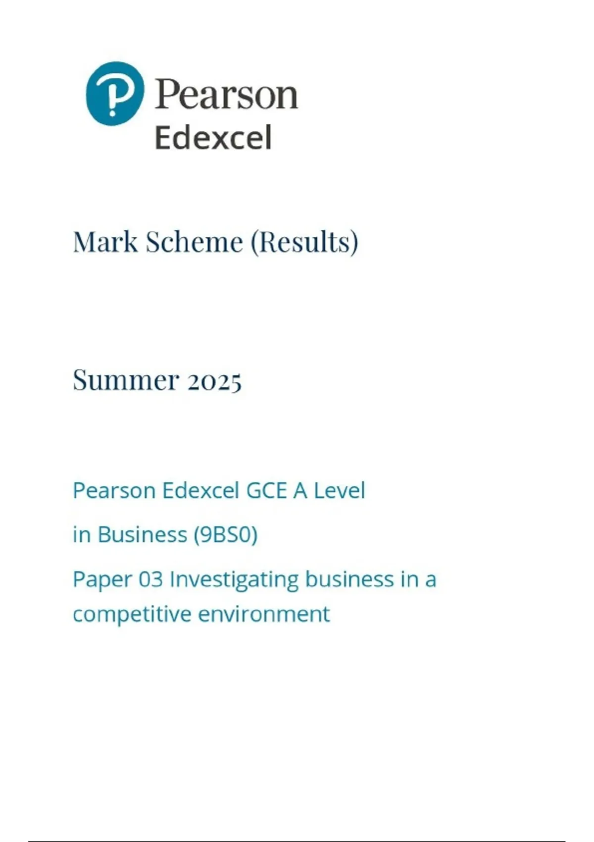 Edexcel 2025 A-Level Business Paper 1 Mark Scheme