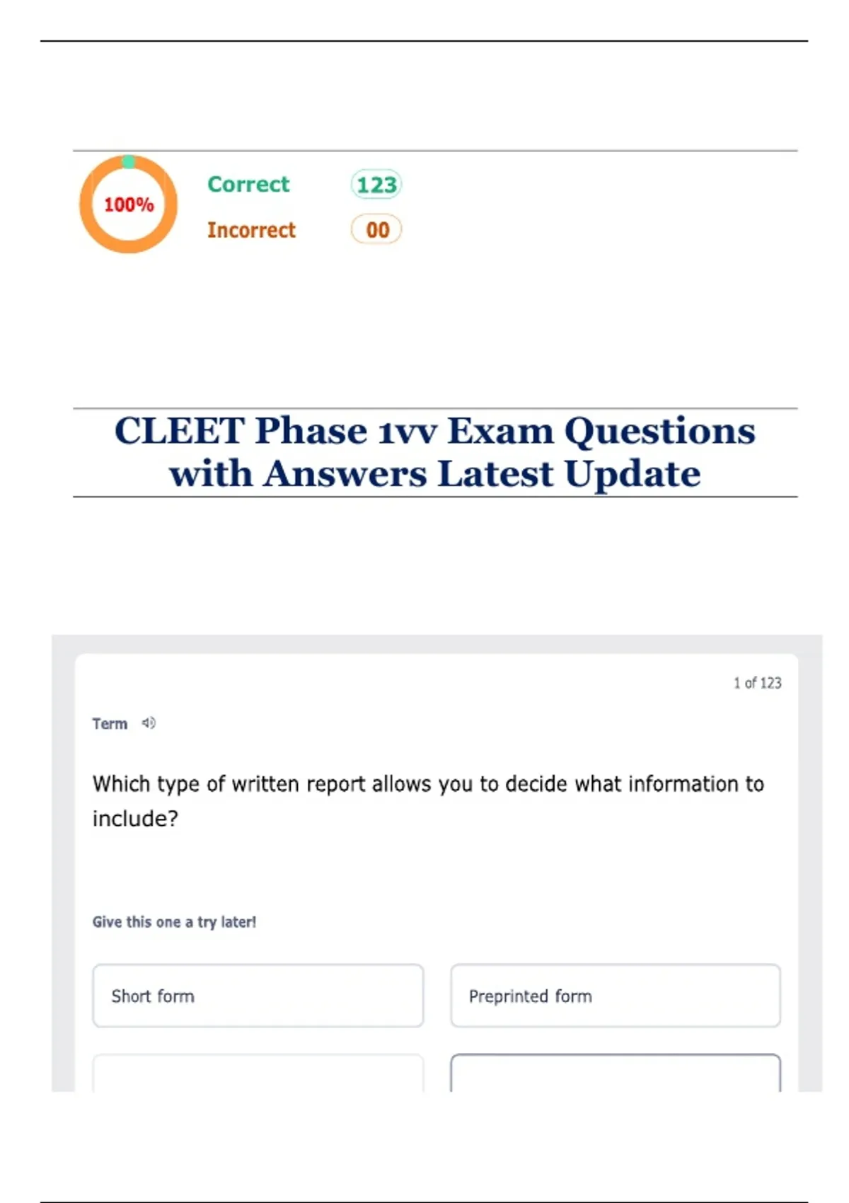 CLEET Phase 2 Exam Questions with Answers Latest Update