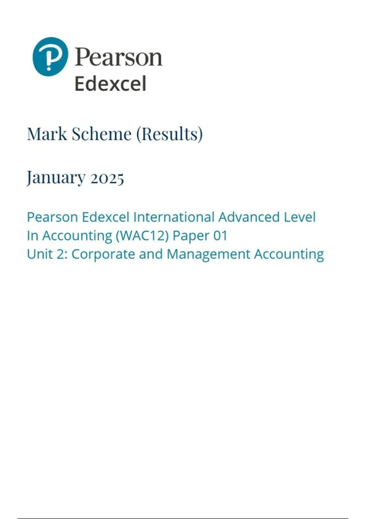 Pearson Edexcel International Advanced Level In Accounting (WAC12) Paper 01 Unit 2: Corporate and Management Accounting marking scheme January 2025