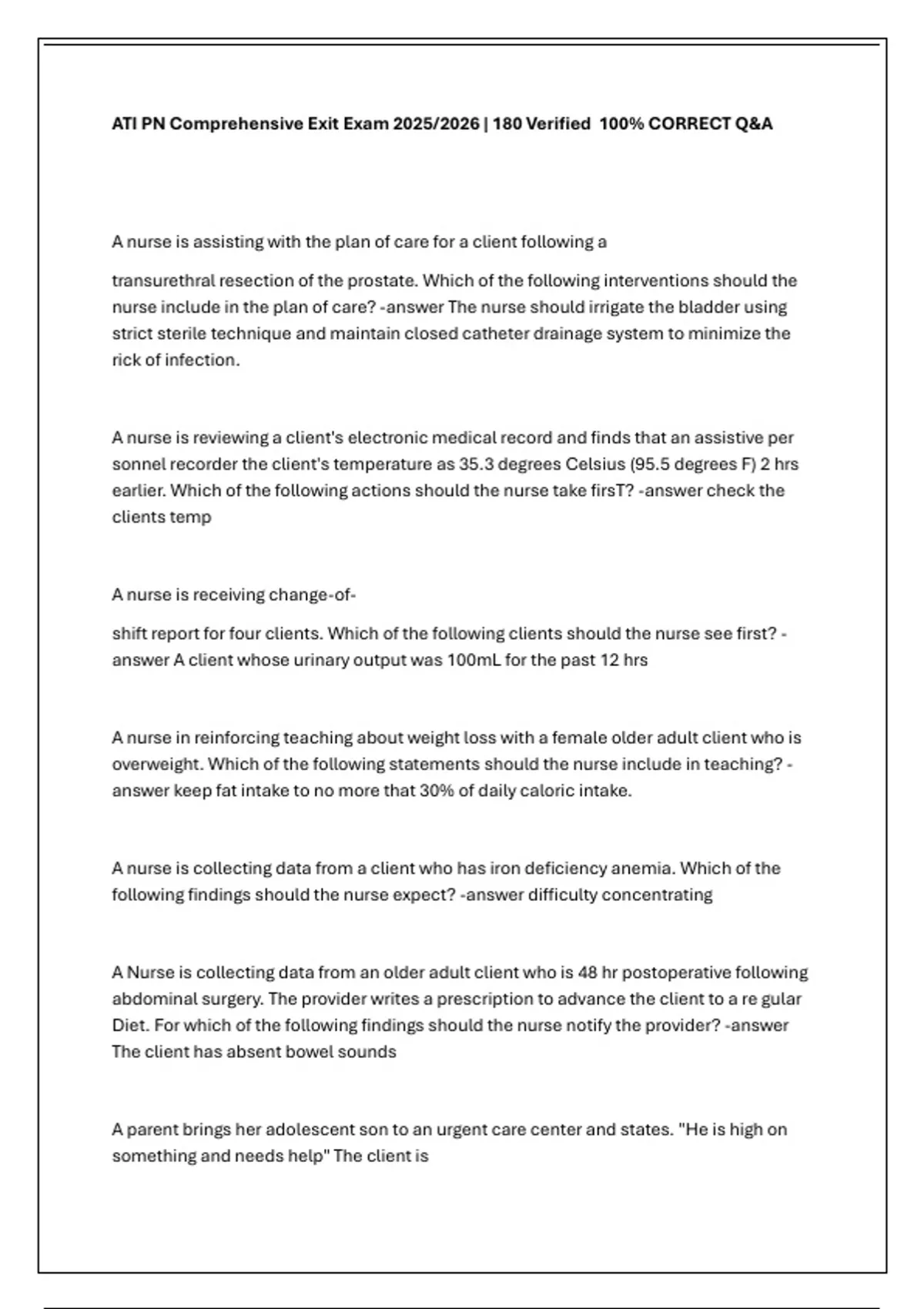 ATI PN Comprehensive Exit Exam 2025/2026 | 180 Verified 100% CORRECT Q&A