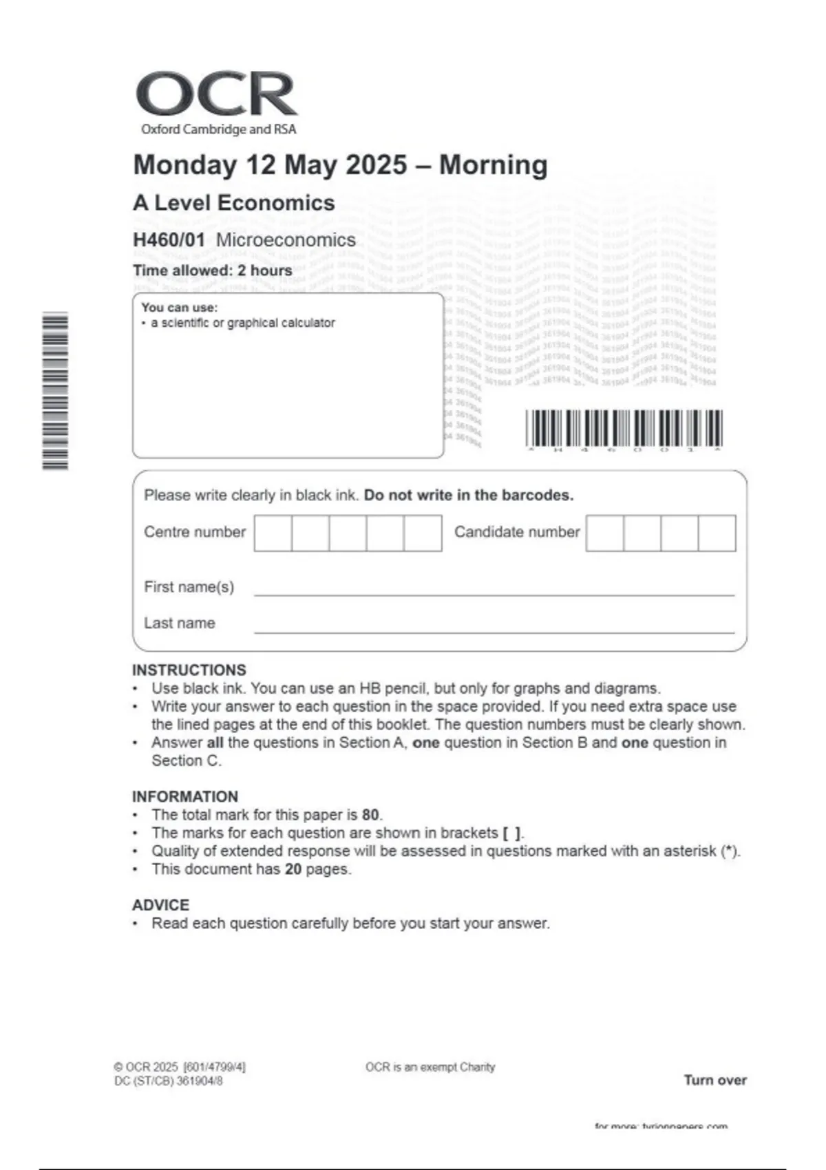 OCR A Level Economics H460/01 Microeconomics June 2025