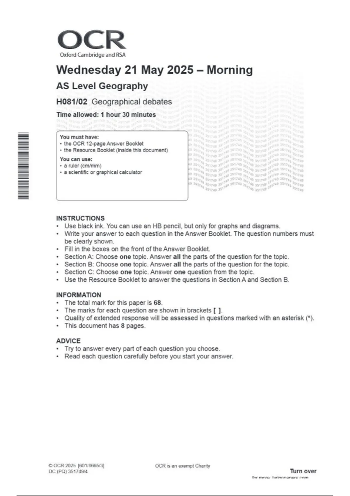 OCR AS Level Geography H081/02 Geographical debates June 2025