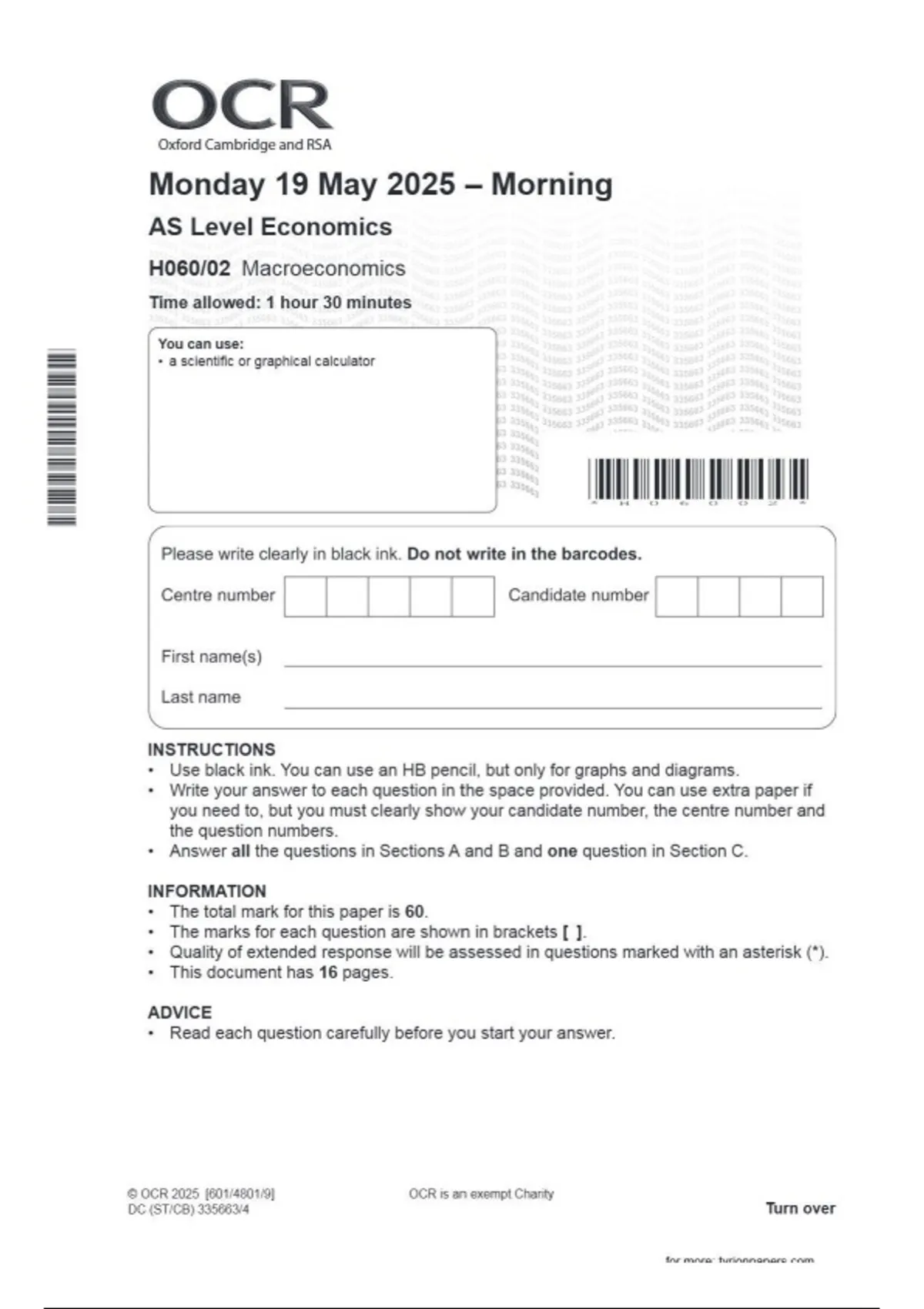 OCR AS Level Economics H060/02 Macroeconomics June 2025