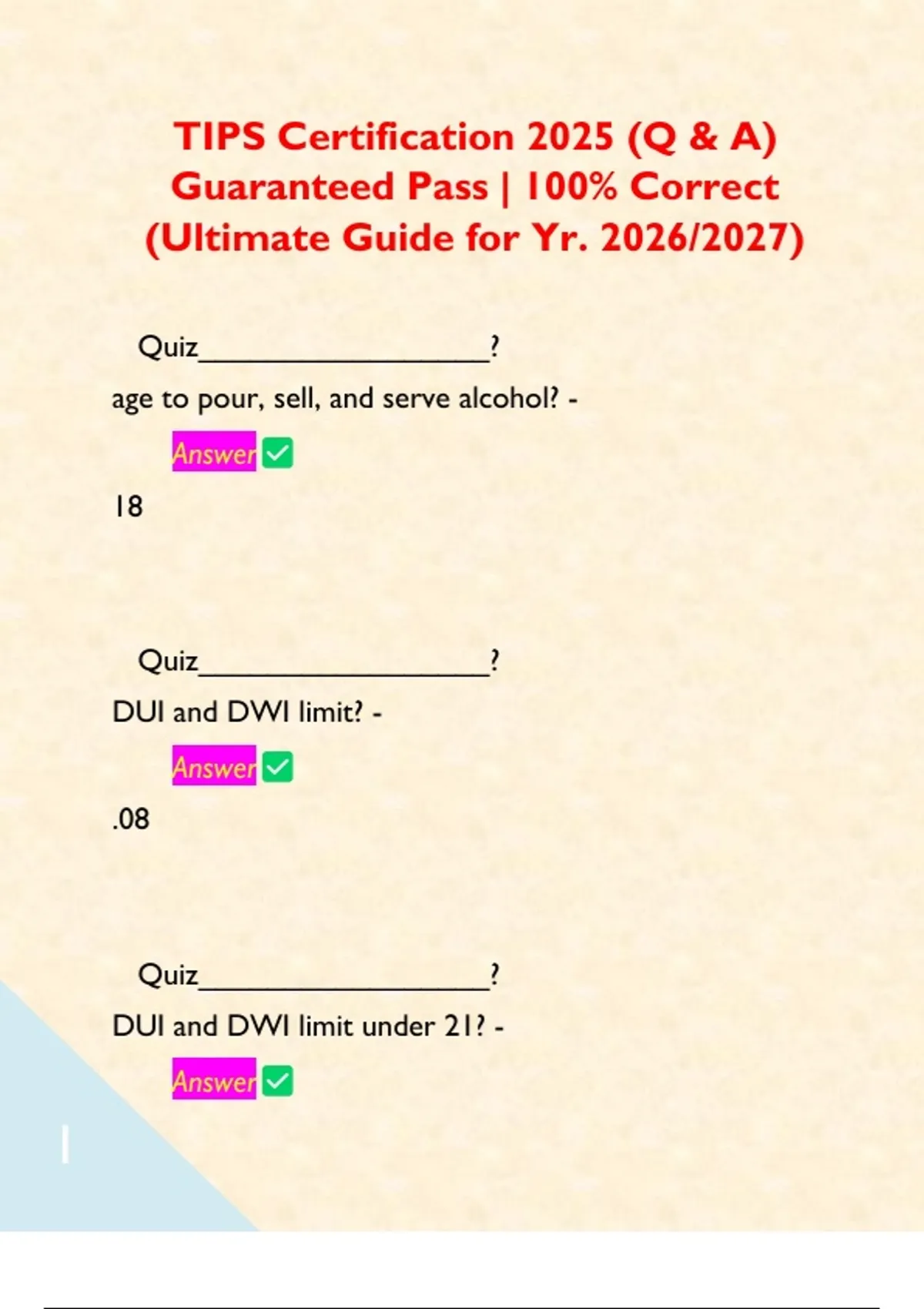 TIPS Certification 2025 Study Guide (Q & A) BUNDLE | 100% Correct (Ultimate Guide for Yr. 2026/2027)