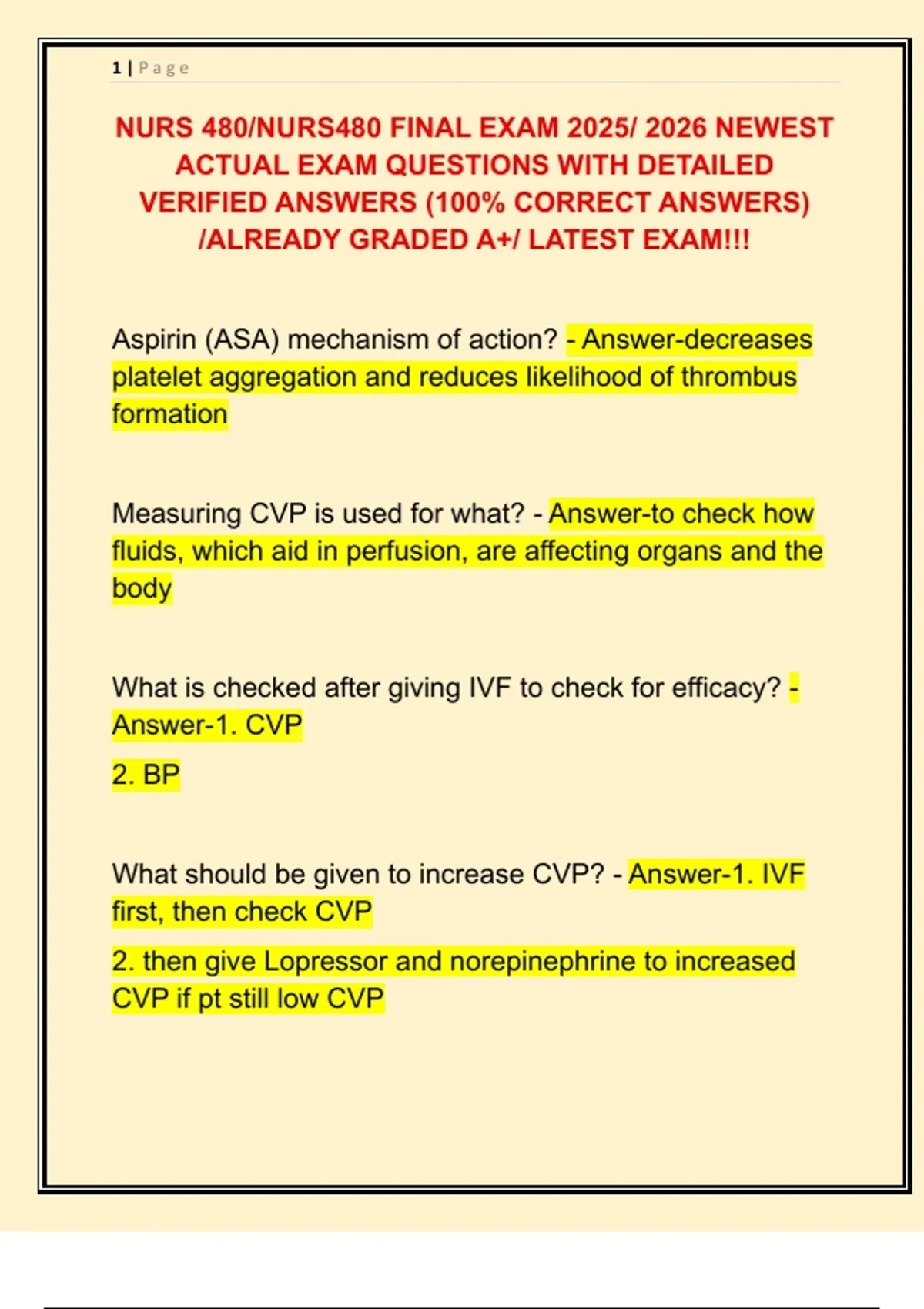 NURS 480 PACKAGE DEAL COMPLETE QUESTIONS AND CORRECT DETAILED ANSWERS ||VERIFIED EXAM!!(100% VERIFIED ANSWERS) |ALREADY GRADED A+| ||PROFESSOR VERIFIED|| ||NEWEST EXAM!!!!||