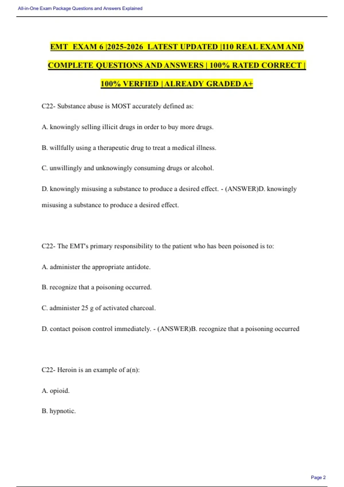 EMT Exam 6 2025/ 2026 Latest Updated 110 Real Exam Questions and Answers Test Bank Study Guide Practice Questions Answer Key with Solution 100% Rated Correct 100% Verified Already Graded Edition