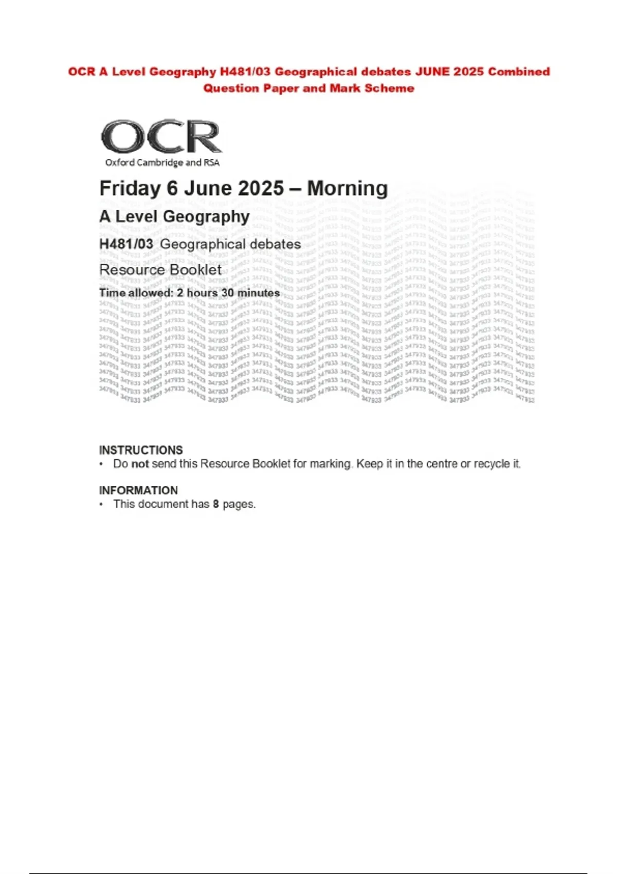 OCR A Level Geography H481/03 Geographical debates JUNE 2025 Combined Question Paper and Mark Scheme