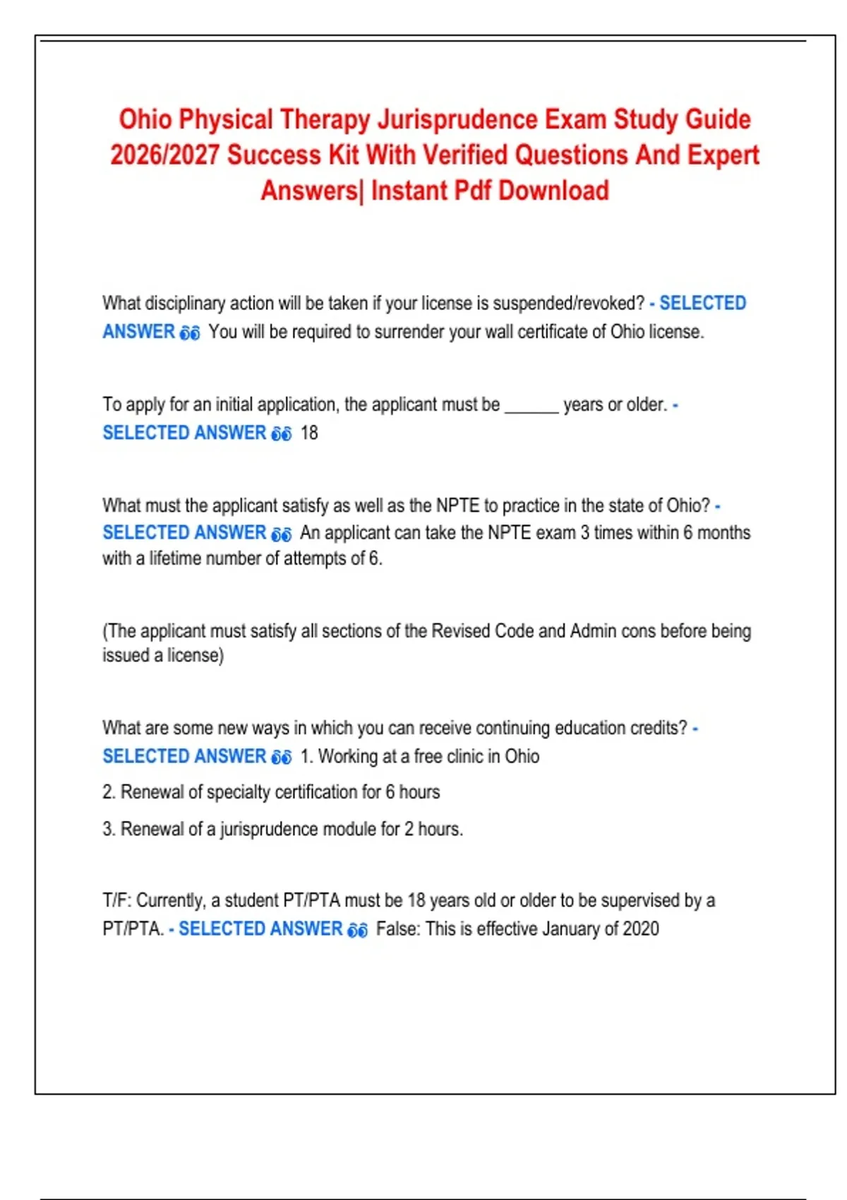 Ultimate Ohio Physical Therapist Assistant (PTA) Jurisprudence Exam Bundle | 2026/2027 Study Kit with Expert Answers