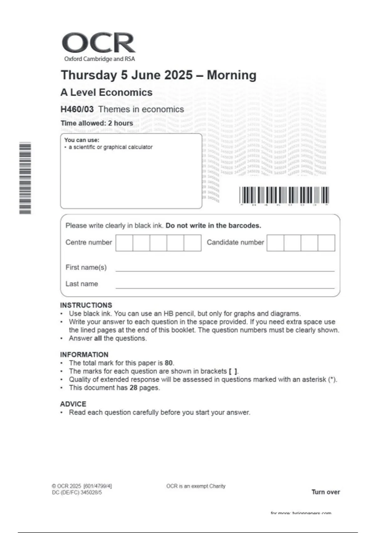 OCR A Level Economics H460/03 Themes in economics June 2025