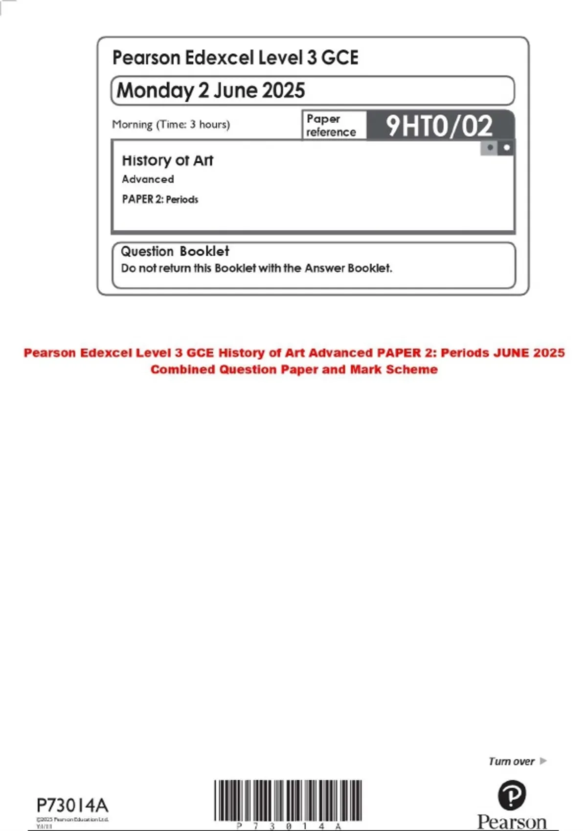 Pearson Edexcel Level 3 GCE History of Art Advanced PAPER 2: Periods JUNE 2025 Combined Question Paper and Mark Scheme